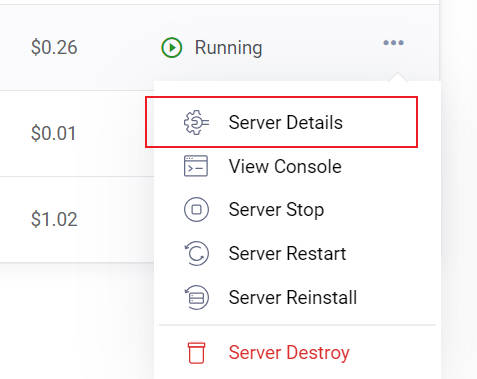 在服务器的最右边,点击三个点,再点击Server Details就可以看到该服务器的详细信息。